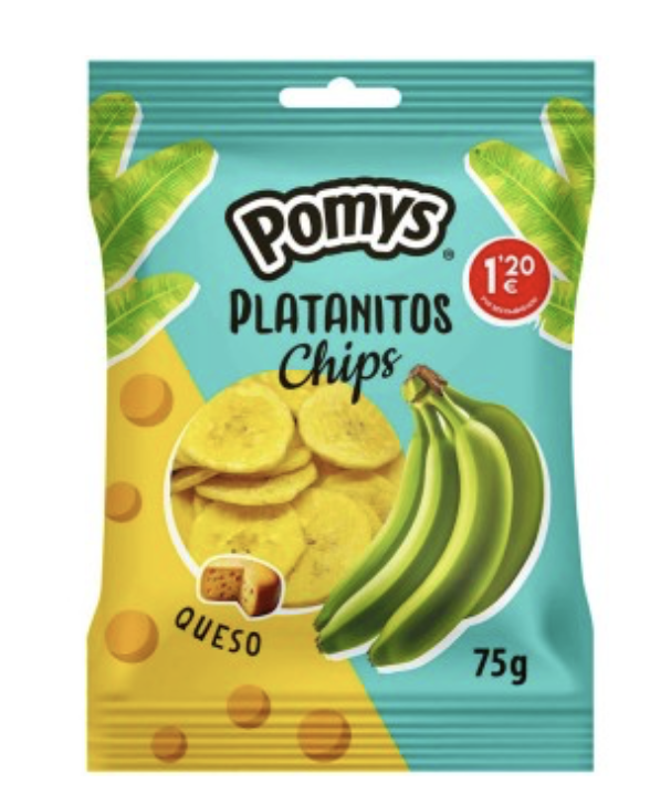PACK 15 UNIDADES POMYS PLATANITOS CHIPS QUESO 75GR