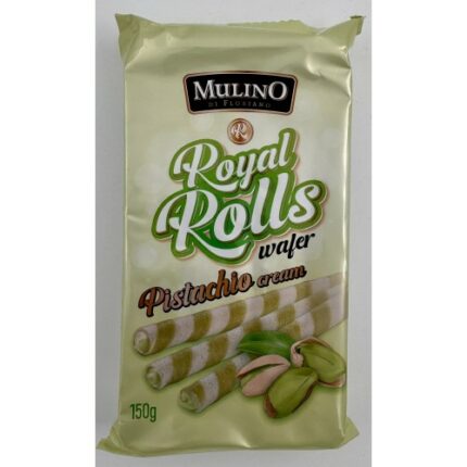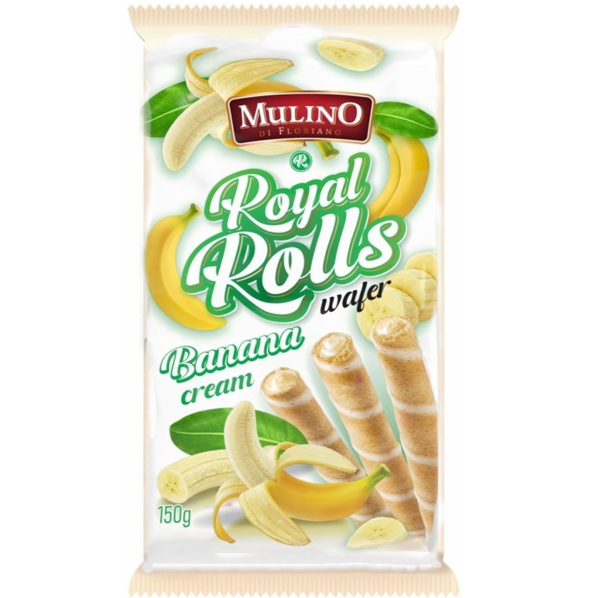 ROYAL Rolls Plátano 150 g (16 unidades) son barquillos crujientes rellenos con crema de sabor a plátano.