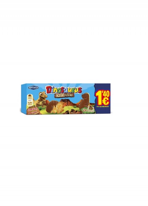 La DINOSAURUS Choco Leche 85 g (caja 12 unidades) son unas galletas con forma de dinosaurio, crujientes y cubiertas de una fina capa de chocolate con leche. Tienen un sabor dulce y suave, y vienen en bolsitas individuales, ideales para merienda o snack.